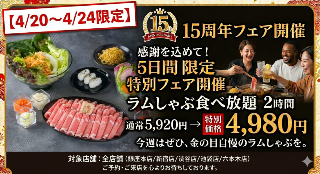 ラムしゃぶ金の目 新宿店15周年フェア開催